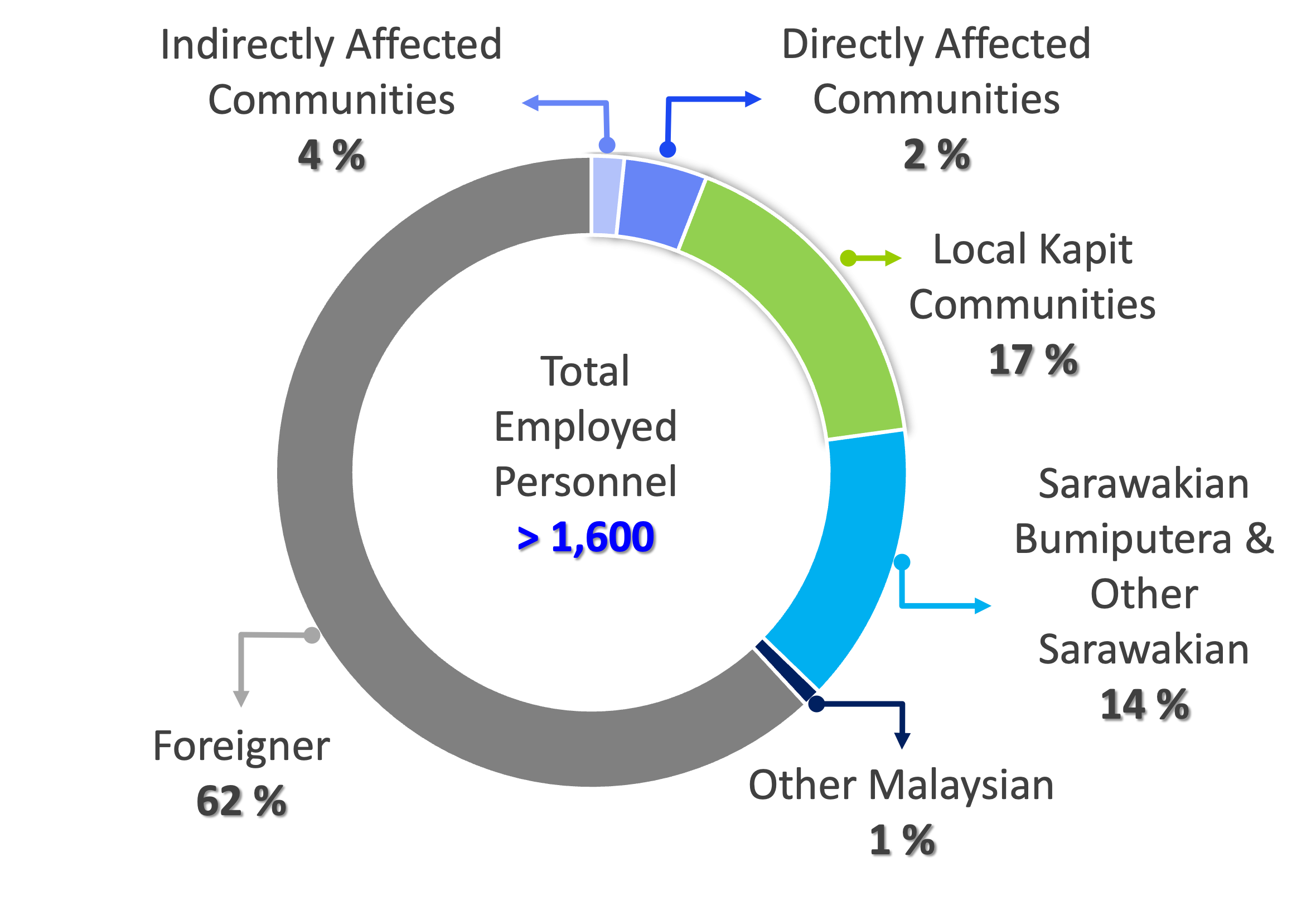 Employment opportunities for locals are monitored in line with job suitability and requirements. Of the total workforce, up to 37% are Sarawakians.