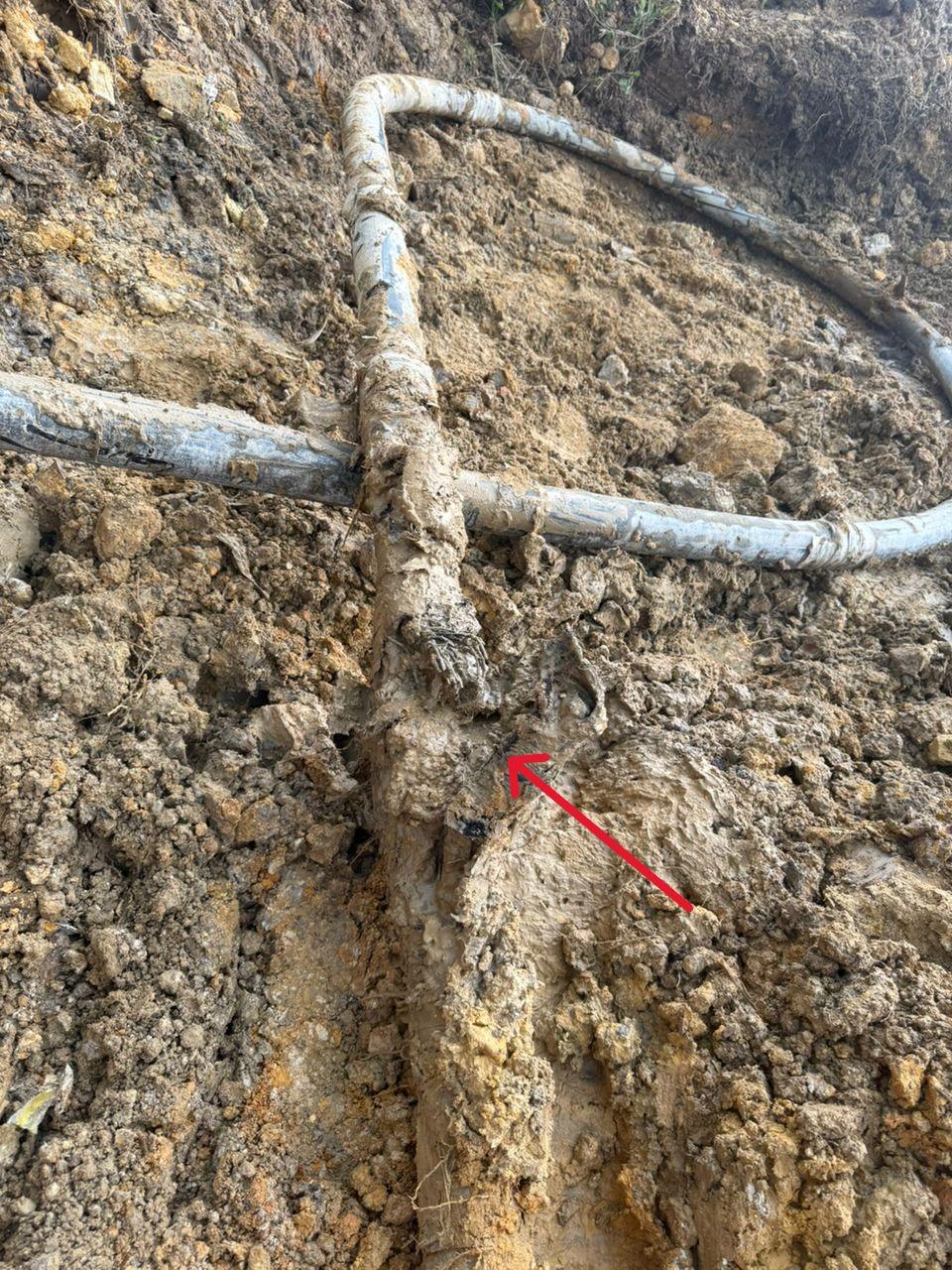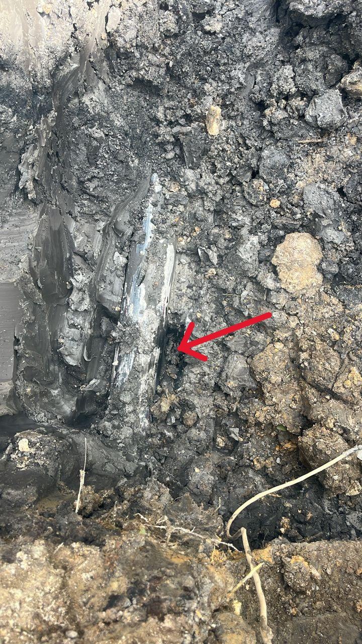 Damaged underground cable at Jalan Salim caused by excavation works (red arrow).