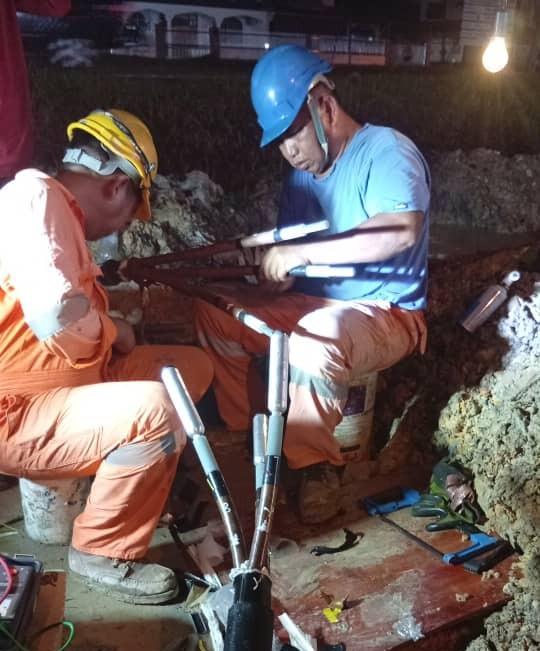SESCO’s technical team carrying out repairs on the damaged cable.