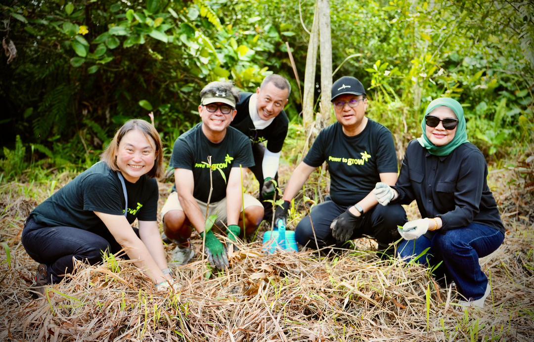 From left: Sarawak Energy General Manager for Corporate Communication, Elaine Tan Chiaw Hoon; Senior Vice President for Legal and Compliance, George Chapman; Senior Vice President for Contracts and Procurement, Yusri Safri; Sarawak Energy Group Chief Executive Officer Datuk Haji Sharbini Suhaili and Datin Hajah Norasmah Kassim during the tree planting activity at Piasau Nature Reserve, Miri.